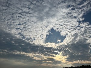 Then were the days when wispy clouds of all shapes and formations traversed by. In the distance one evening I saw a thunderhead cloud – and was surprised a moment later to see the lightning in the cloud illuminating and then fading – on and off again as the storm it surely carried moved northward.