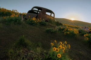 That’s what we need to do – sit a spell. Time slows on out-of-the-way mountain roads. Wildflower fields, freshly plowed rows of vegetables growing, rusty cars with sunflowers popping out of them. Signs for Barbeque ahead – best around, come on in. This is my happy place.