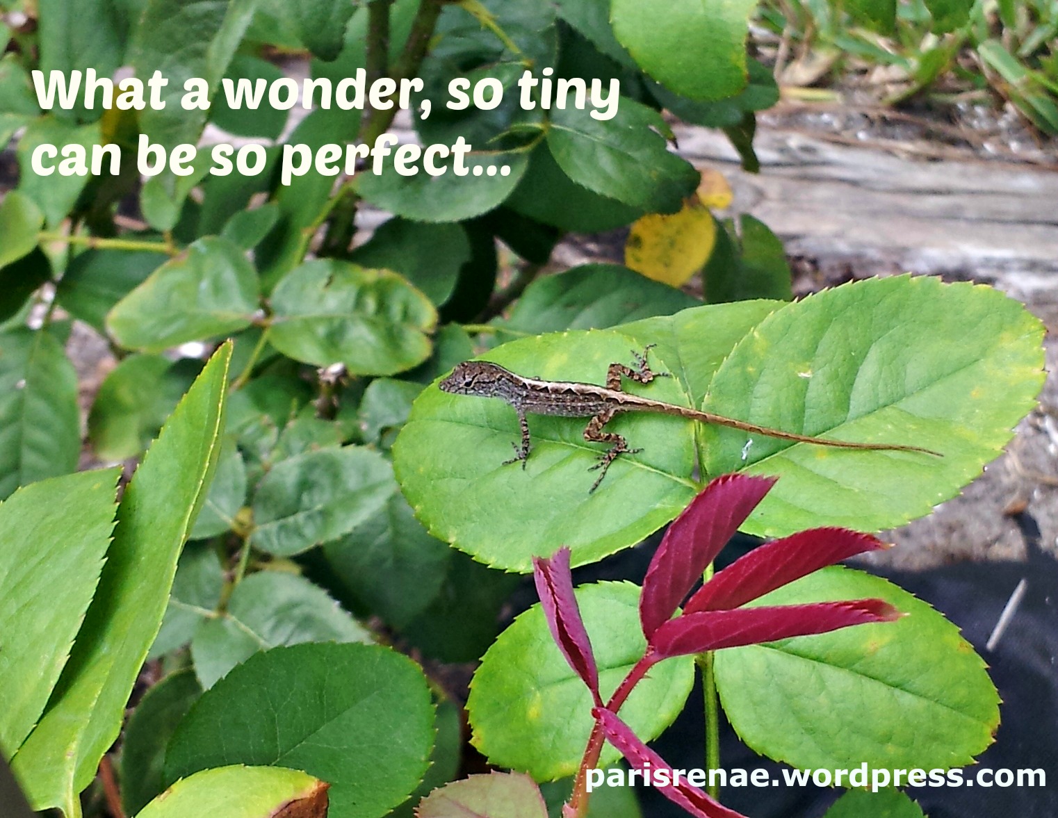 Take a look at the lizard on this rose leaf, if it wasn’t for his tail he wouldn’t be as long as the leaf, and the leaf was not much more than an inch long… what a wonder so tiny can be so perfect…