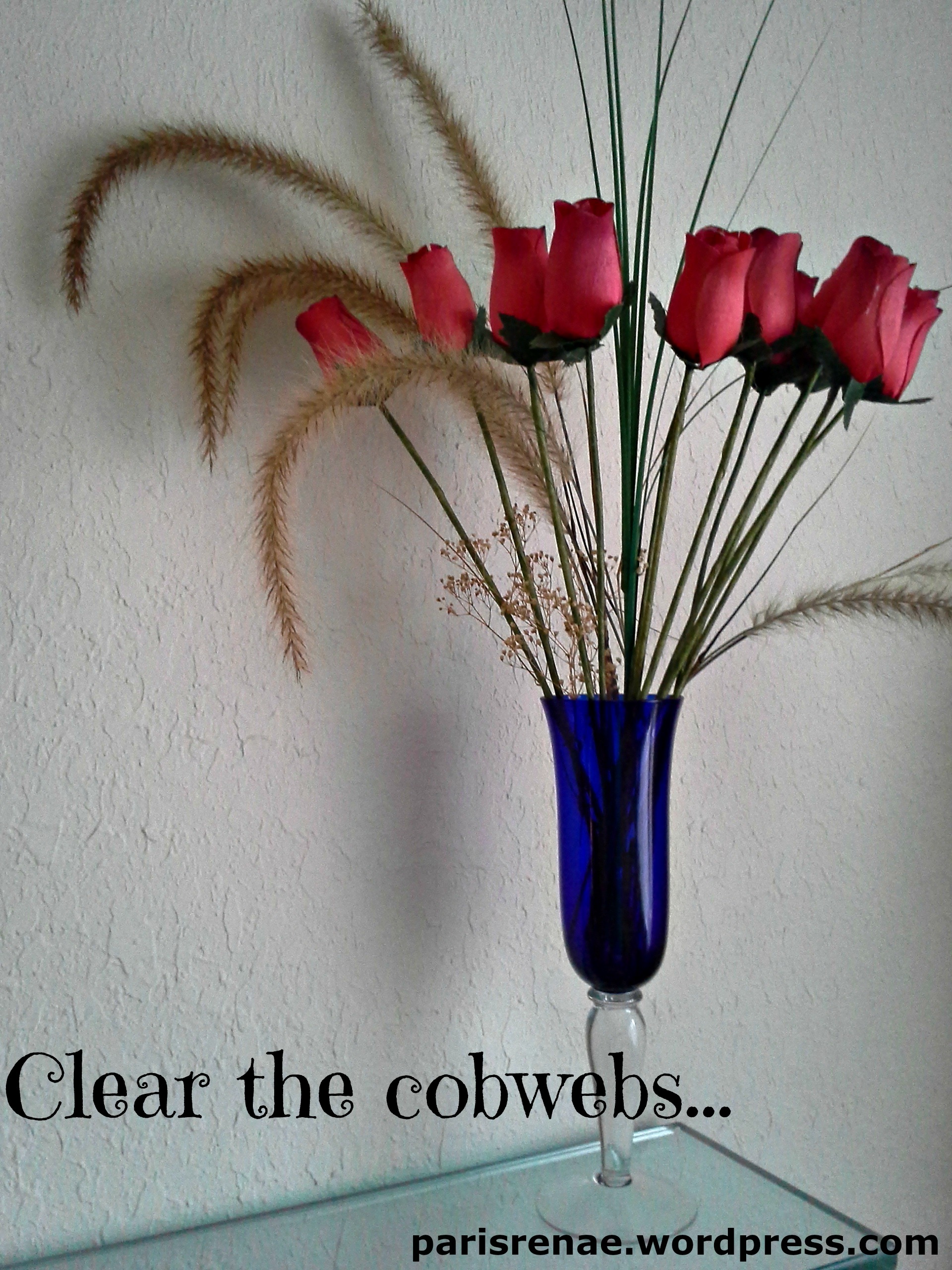 Sometimes I think we need to clear the cobwebs out of our brains… We need bright blue sky vision even when its cloudy. We need a walk with the wind in our face when we can’t leave the house. We need flowers in a vase when a bloom isn’t in sight…