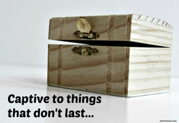 “I will be found by you, declares the Lord, and will bring you back from captivity.” (Jeremiah 29:14a NIV) Captivity. Yes, captive to a world who holds on tight, blinding us – we search and find only things that don’t last.