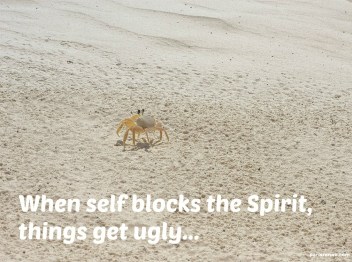 I actually have crab clog now and then. Times when my heart knows the right words and attitudes, but my brain wants to be grouchy. Blocking the way to what God wants me to see in the situation. When self blocks where the Spirit wants to lead, things get ugly.