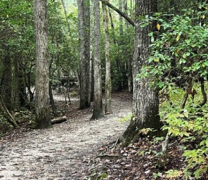 There were small elevation changes up and down, a shady canopy overhead. But my first clue came when my watch told me we had been going for two miles and there was no sign of being back near the trailhead. Hmm, must be around the bend… Around the bend we were out of water and a good mile or more – uphill – in the sun away.
